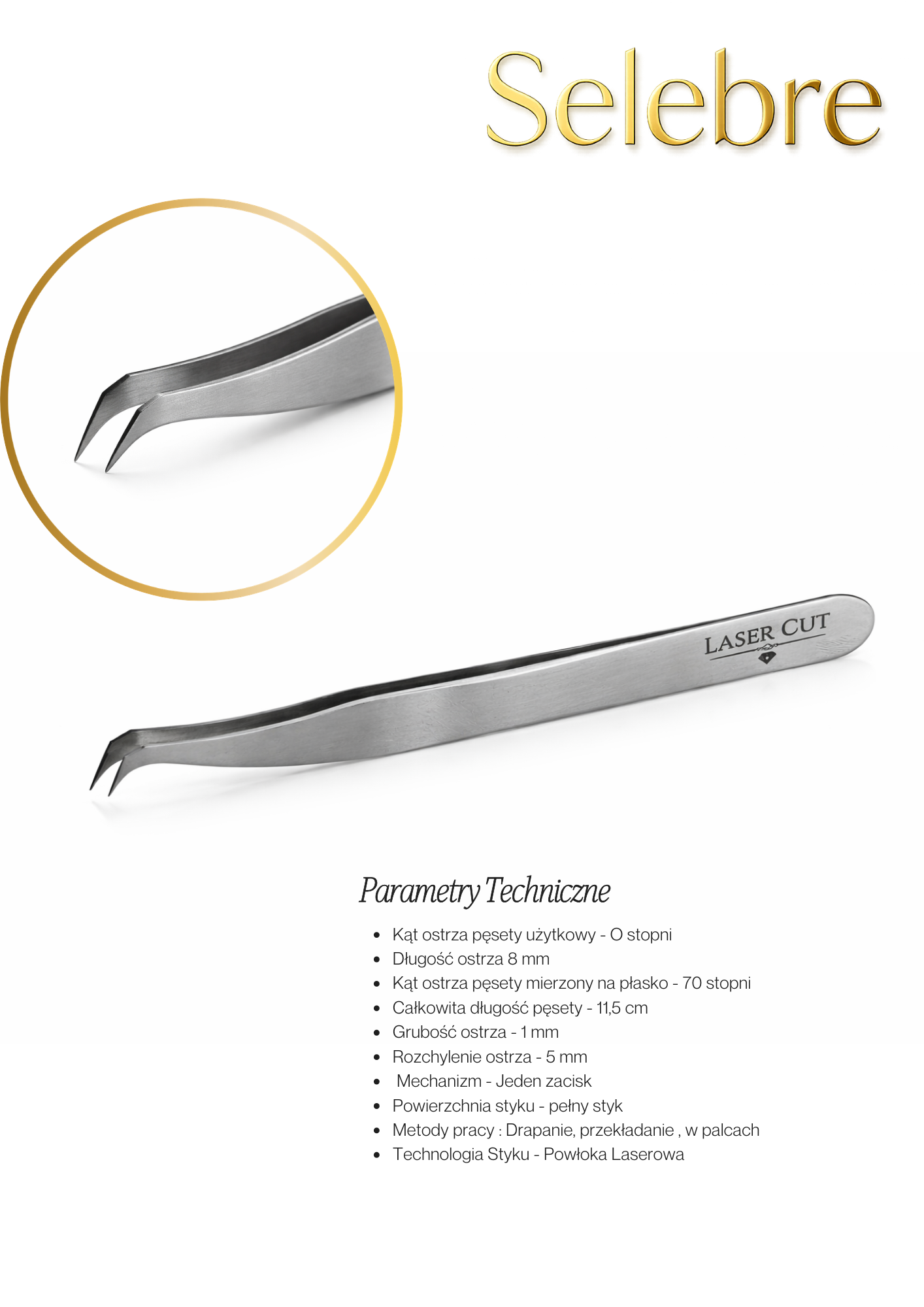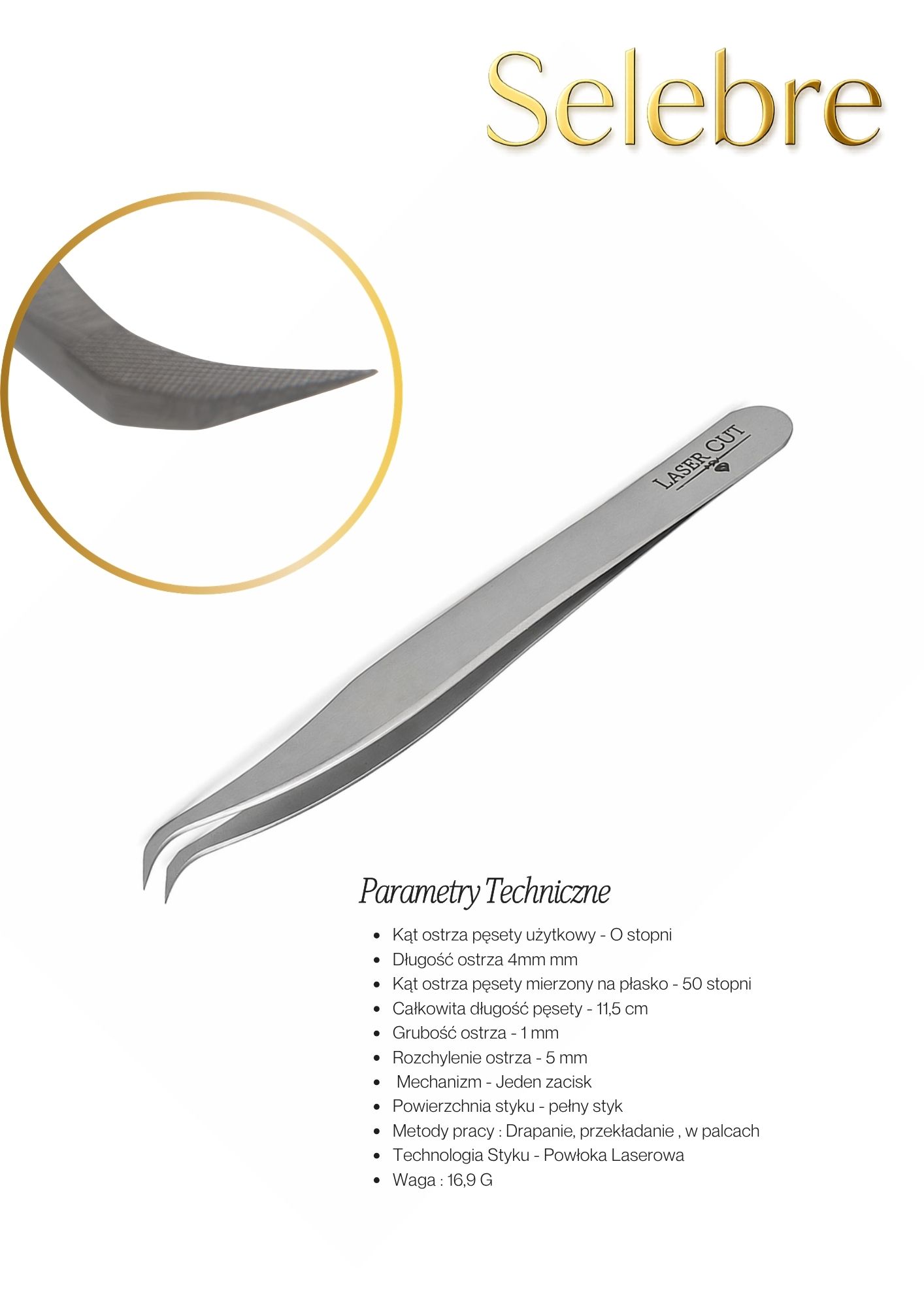 Jeśli potrzebujesz więcej informacji napisz do sklep@selebre.pl a my prześlemy Ci ankietę aby ustalić parametry wymarzonej pęsety.